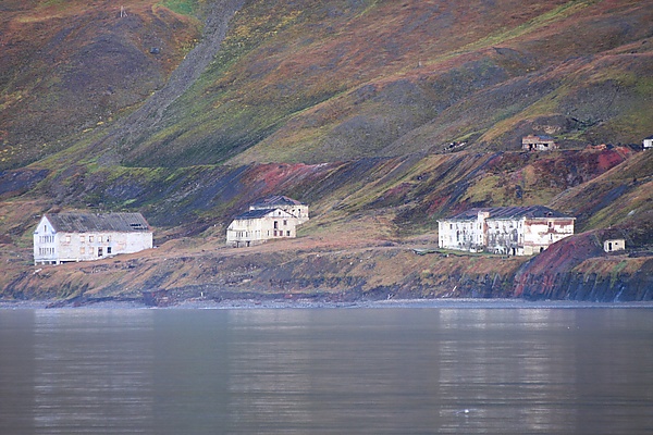 В самом посёлке Грумант находятся несколько аварийных зданий советского времени, непригодных для эксплуатации.