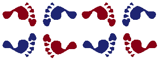 (TRVG) Отражение относительно вертикальной оси, скользящая симметрия, перенос и поворот на : Параллельный перенос здесь получается как результат двух скользящих симметрий, так что группа генерируется скользящей симметрией и либо вращением, либо вертикальной симметрией. |