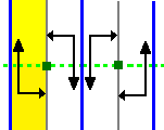 - §Диаграмма показывает одну фундаментальную область, выделенную жёлтым цветом. Оси отражения показаны синим цветом, оси скользящей симметрии показаны зелёным пунктиром, а точки вращения показаны зелёными квадратиками.