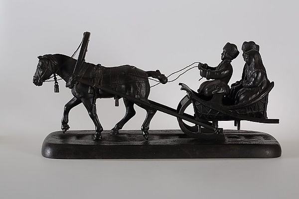 Группа людей в санях на лошади (скульптура)