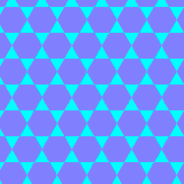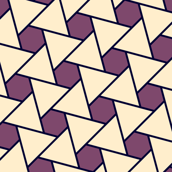 Узор с такой симметрией можно считать мозаикой плоскости с равными треугольными плитками с симметрией C3, или эквивалентно, замощение плоскости равными шестиугольными плитками с симметрией C6 (при этом края плиток не обязательно будут частью узора).