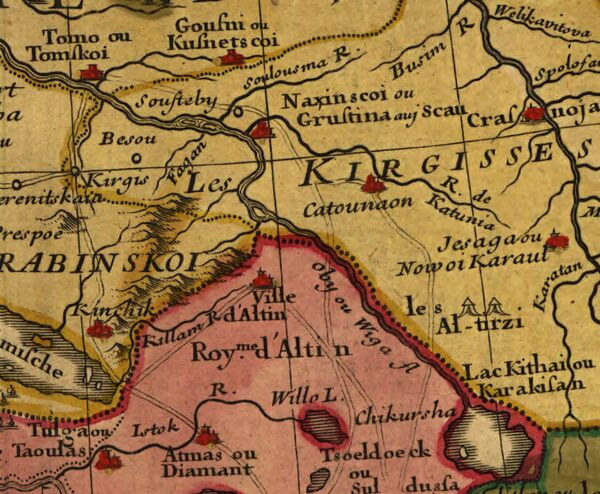 Изданные в первой половине XVII века карты продолжают представлять до-Ермаково состояние Сибири: на них отсутствуют основанные в 1587—1604 гг. города Тобольск, Сургут, Томск, зато есть исчезнувшие, неизвестные людям Серпонов, Грустина, Касим, Иером и др.