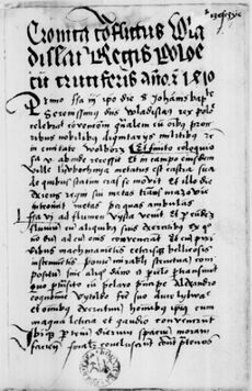 - ↑ Гагуа Р. Б. Грюнвальд в источниках: «Хроника конфликта Владислава, короля Польши, с крестоносцами в год Христов 1410». — Пинск: ПолесГУ, 2009. — С. 127.