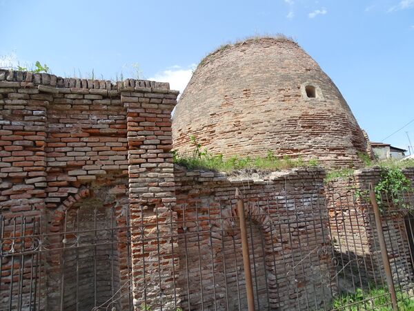 Мечеть Сакина ханум была построена в 1854 году вдовой Аббаскули Бакиханова в память о её покойном муже. Мечеть построена из красного кирпича и похожа на гранёный цилиндр. Каждая грань имеет окно в виде полукруглой арки. Верх фасада окружён оригинальными карнизами из небольших кирпичей. Сверху это величественное здание увенчано большим белым металлическим куполом в форме многогранного шлема. Верх купола украшен изящным тонким шипом[53].