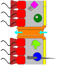 Поскольку в пинакодерме и хоанодерме практически нет межклеточных контактов, эти слои клеток не формируют надёжный барьер, разграничивающий мезохил и воду; поэтому вода постоянно поступает внутрь тела губок. В клетках пресноводных губок обычно имеются сократительные вакуоли, осуществляющие осморегуляцию на уровне отдельных клеток, но не всего тела животного[84].
