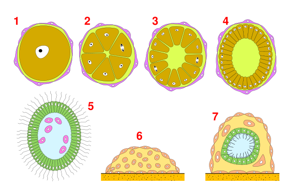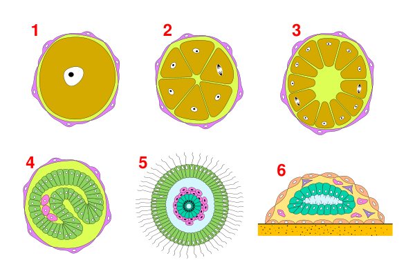 В ходе развития губок их водоносная система может останавливаться на начальной асконоидной стадии либо развиваться до одного из описанных выше более сложных типов — сиконоидного, силлеибидного или лейконоидного[37].