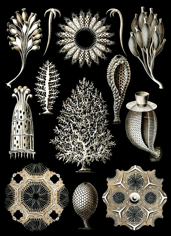 Археоциаты — это группа животных, чьи ископаемые остатки весьма многочисленны в отложениях раннего кембрия (от 530 до 520 миллионов лет назад), но полностью отсутствуют в отложениях позднего кембрия. Им приписывали родство с губками, стрекающими, водорослями и фораминиферами и предлагали выделить в отдельный тип (Archaeocyatha) животных или даже царство (Archaeata или Inferibionta). Однако с 1990-х годов археоциатов рассматривают как своеобразную ископаемую группу губок[220].