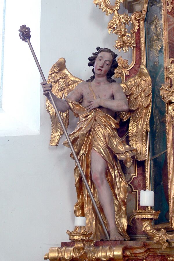 Изображение Святой Губки нередко появляется в произведениях изобразительного искусства. На фреске «Страшный суд» работы Микеланджело (1537—1541 гг.), находящейся на алтарной стене Сикстинской капеллы в Ватикане, можно видеть изображение ангела, держащего в руках шест со Святой Губкой на конце[283][284]. Аналогичная фигура ангела со Святой Губкой встречается на фресках работы Франческо Приматиччо (1541—1544 гг.), украшающих своды хоров часовни Святой Марии в Шали (коммуна Фонтэн-Шали в департаменте Уаза на севере Франции)[285]. Скульптура ангела со Святой Губкой в руках стала наиболее известным произведением итальянского скульптора Антонио Джорджетти, ученика Лоренцо Бернини; эта скульптора, изваянная Джорджетти в 1668 или 1669 году по заданию своего учителя, является одной из десяти скульптур ангелов, установленных на мосту Святого Ангела в Риме (выполненная Джорджетти в качестве эскиза терракотовая голова будущей скульптуры хранится в Эрмитаже[286])[287].