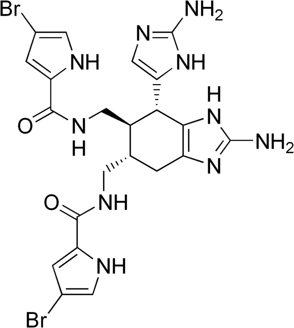 Токсины, выделяемые губками, могут быть направлены также против других сидячих организмов (например, мшанок и асцидий), чтобы они не поселялись на губках и в непосредственной близости от них, благодаря чему губки могут успешно завоёвывать новые площади для жизни. Примерами таких токсинов могут служить агелиферин и дибромагеласпонгин, синтезируемые губками из рода Agelas. Карибская губка Chondrilla nucula выделяет токсины, которые убивают коралловые полипы, и губка растёт на их скелетах. Органические соединения, похожие по своей структуре на гимениалдисины, а также 2-бромалдизин, характеризующиеся умеренным противомикробным действием, найдены в различных видах губок[177].