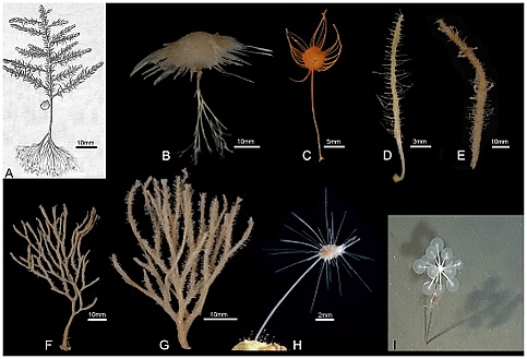 Аристотель (IV век до н. э.), стоявший у истоков научной систематики животных, разделил их в своём сочинении «О частях животных» (др.-греч. Περὶ ζώων μορίων) на две большие группы — «животные, обладающие кровью» и «животные без крови», выделив в каждой из них более мелкие подразделения. Среди подразделений второй из этих групп (примерно соответствующей позднейшим беспозвоночным) он, в частности, выделил «безраковинных свободноживущих» (голотурии, гидроиды) и «безраковинных прирастающих» (актинии, губки), трактуя их как организмы, в которых смешана животная и растительная природа[3].