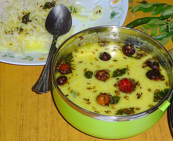 Основные ингредиенты: дахи (йогурт), нутовая мука, асафетида, молотая корица, семена горчицы, листья карри и листья кориандра[10].
