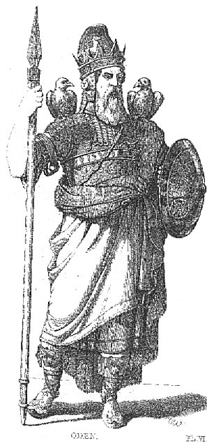 - «А когда продлился бой тот некое время, явился на поле том человек в нахлобученной шляпе и синем плаще; был он крив на один глаз, и в руке у него — копьё. Этот человек выступил навстречу Сигмунду-конунгу и замахнулся на него копьём. А когда Сигмунд-конунг ударил изо всей силы, столкнулся меч с копьём тем и сломался пополам на две части».[3]