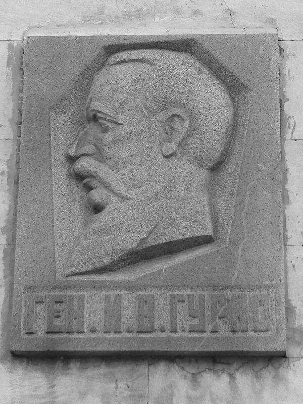 В память руководства Гурко Варшавским военным округом офицеры и генералы решили в знак глубокого уважения к его 10-летним заботам и трудам в округе подарить ему оригинальный подарок. Это была мини-памятник фельдмаршалу — он верхом, на галопе, в сюртуке и шарфе, как обычно его видели в войсках. Конная статуя, высотою около 60 сантиметров, была вылеплена из глины скульптором И. Н. Шредером, отлита из бронзы и установлена на мини-пьедестал. На передней стороне пьедестала был изображён родовой герб фамилии Гурко, а над ним прикреплена досочка с надписью: Генерал-фельдмаршалу, генерал-адъютанту Иосифу Владимировичу Гурко, своему начальнику и вождю войска Варшавскаю военного округа. 1883—1894.[19]