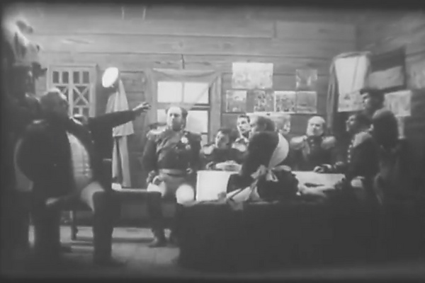 Перелески, луга, речки, печальные церквушки на холмах, снежные поля и жёлто-белый помещичий дом в старом парке, и мчащиеся кони, и обозы, и битвы, и гордый воинский строй перед фельдмаршалом — всё это было снято «натурно» в собственном смысле этого слова. Изображение, как бы минуя все художественные «опосредования» (и батальную живопись XIX века, и русскую миниатюру, и ритм мазурки) должно было возвратить зрителя к живой действительности 1812 года.
