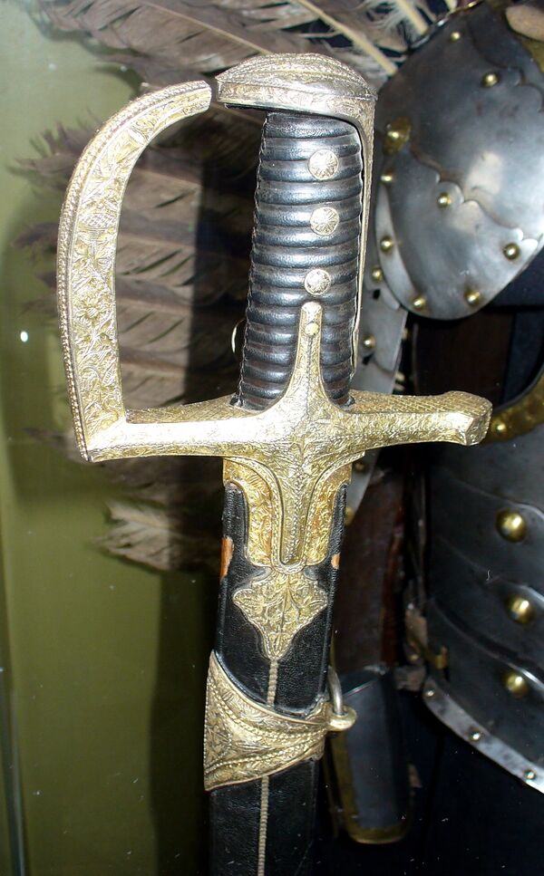 - 1a. Сабля с закруглённой пальцевой дужкой, в которую переходит переднее плечо крестовины, сгибаясь под углом около 100°. Конец XVI — первая половина XVIII века.