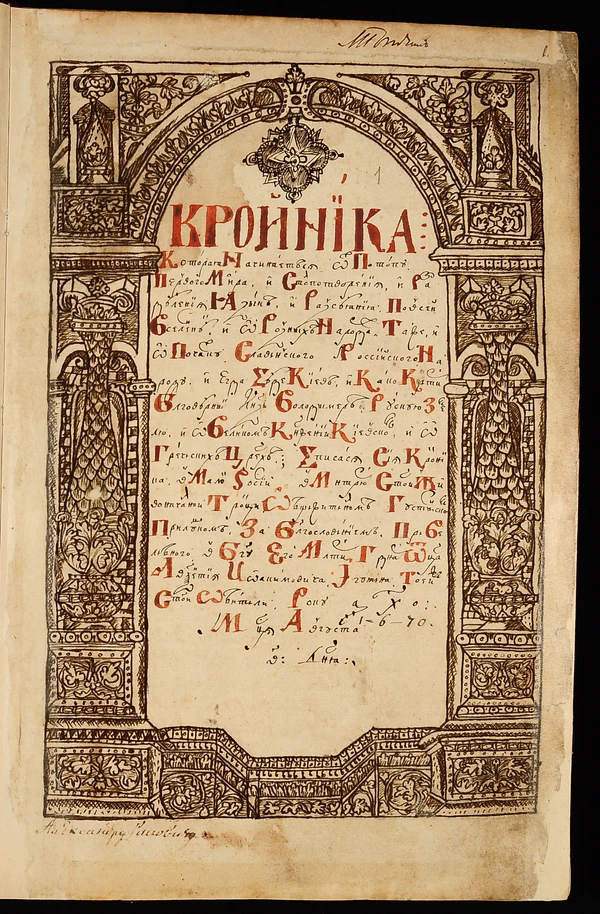 О началѣ козаковъ. В лѣто 7024. 1516… В сие лѣто начашася на Украйнѣ козаки, о них же откуду и како начало своё прияша нѣчто речемъ «Аще и от начала своего сей нашъ народ руский бранми всегда употребляшеся… якоже в семъ лѣтописци естъ видѣти, донелѣ же през Батиа, татарского царя, иже землю нашу Рускую пусту сотвори, а народ нашъ умали и смири…» (л. 164 об.).