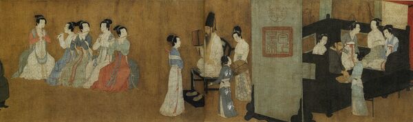 Горизонтальный свиток размером 28.7 x 335.5 см представляет собой набор из отдельных сцен, причём в первой из них художник использует перспективу. Порой изображения строятся так, будто художник снял крышу и смотрит сверху. Содержание сцен (справа налево, в традиционном порядке китайского письма):