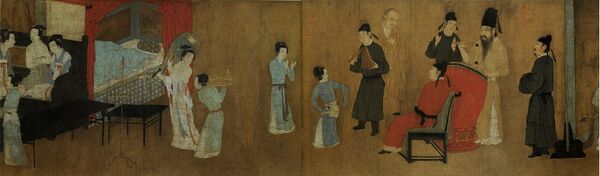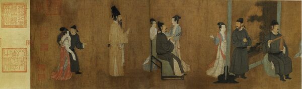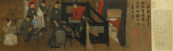 - 2. «Ночная пирушка Хань Сицзая». Гугун, Тайбэй. Свиток. Имеет колофон Чжан Чэна с датой 1141 г. Это часть композиции свитка, хранящегося в Пекине.