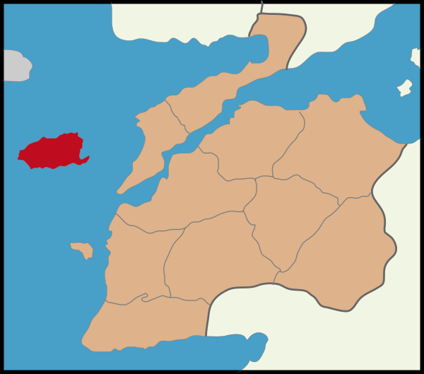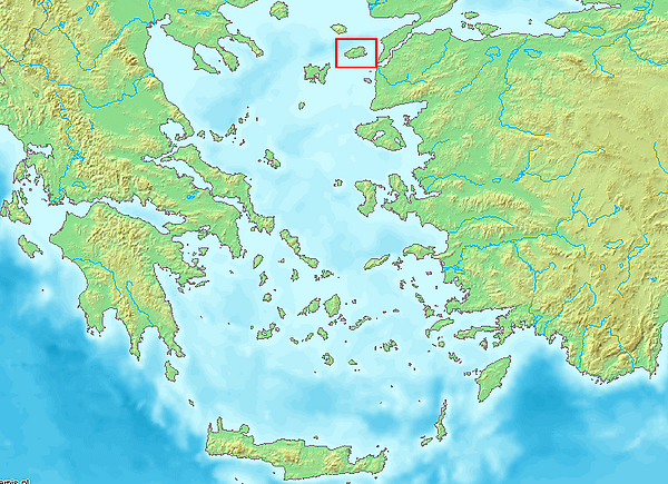 Является самым большим островом Турции. На полуострове Авляка (Инджирбурну, тур. İncirburnu) находится самая западная точка Турции. Имеет площадь 279 км²[4].
