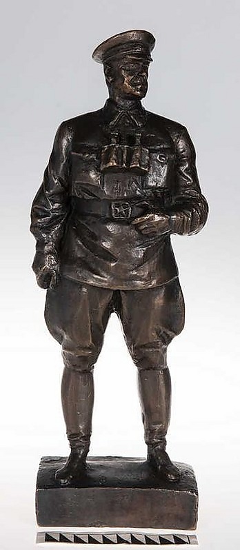 Скульптура представляет собой фигуру маршала Г.К. Жукова в полный рост. Ноги его широко расставлены, голова повёрнута вправо. Из одежды надеты гимнастёрка, брюки-галифе и высокие сапоги. На голове расположена фуражка. Правая рука опущена вдоль тела, левая находится на ремне. На груди виднеется бинокль. Скульптура установлена на подставке, на задней части которой обнаружена монограмма автора «ЧАР». Размер скульптуры составляет 37×12×8,5 см.