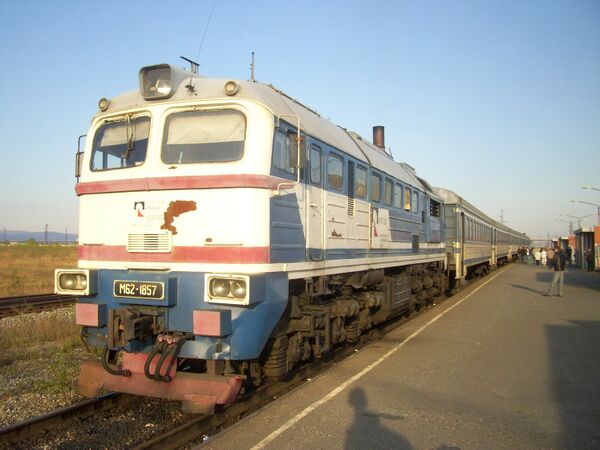 Для использования в качестве тяговых единиц поезда доработаны односекционные тепловозы ДМ62-1811, ДМ62-1815 и ДМ62-1857 (установлены дополнительные хвостовые огни и тому подобное). При формировании состава могут использоваться любые два из них, третий остаётся в резерве. Вместо обозначения «ДМ62» на табличках этих тепловозов была маркировка «М62»[к 2].