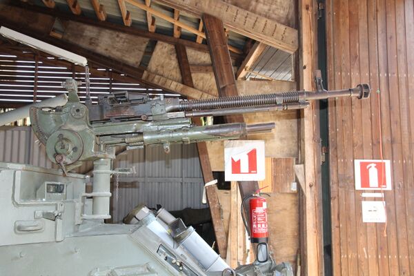 В затыльнике ствольной коробки смонтированы пружинные буфера затвора и затворной рамы. Огонь вёлся с заднего шептала (с открытого затвора), для управления огнём использовались две рукоятки на затыльнике и спаренные спусковые крючки. Прицел рамочный, на станке также имелись крепления для зенитного ракурсного прицела.