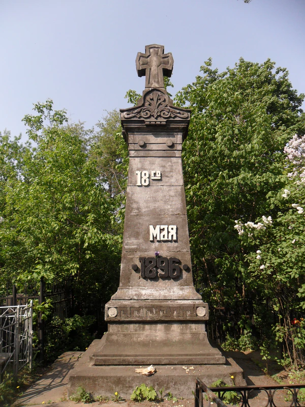 В 1896 году на Ваганьковском кладбище на братской могиле был установлен памятник жертвам давки на Ходынском поле по проекту архитектора И. А. Иванова-Шица с выбитой на нём датой трагедии: «18-го мая •1896•».