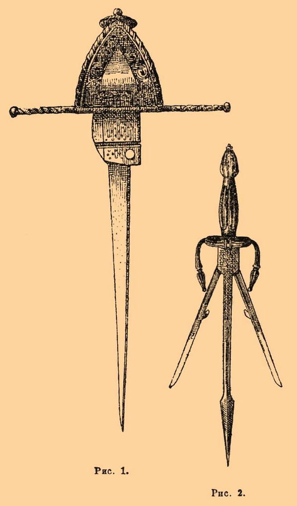 Немецкая дага имеет ловушку для вражеского клинка в виде двух расходящихся в стороны соединенных шарнирно с основным клинком захватов, которые откидываются пружинами в боевое положение. Освобождались захваты кнопкой в рукояти. При попадании шпаги противника в полученный таким образом трезубец она удерживалась на время контратаки другой рукой, а клинок невысокого качества мог даже переломиться.
