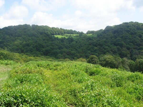 В сравнении с левым ущельем, ущелье правого, или Западного Дагомыса «довольно узко и лесисто», «не представляет широких полян, но тем не менее оно было заселено, о чём свидетельствуют находящиеся на склонах гор хлебородные поляны и сады». В этой местности бывшие горские поселения располагались на довольно высоких террасах, так как солнце слабо освещало узкое и лесистое ущелье Западного Дагомыса.