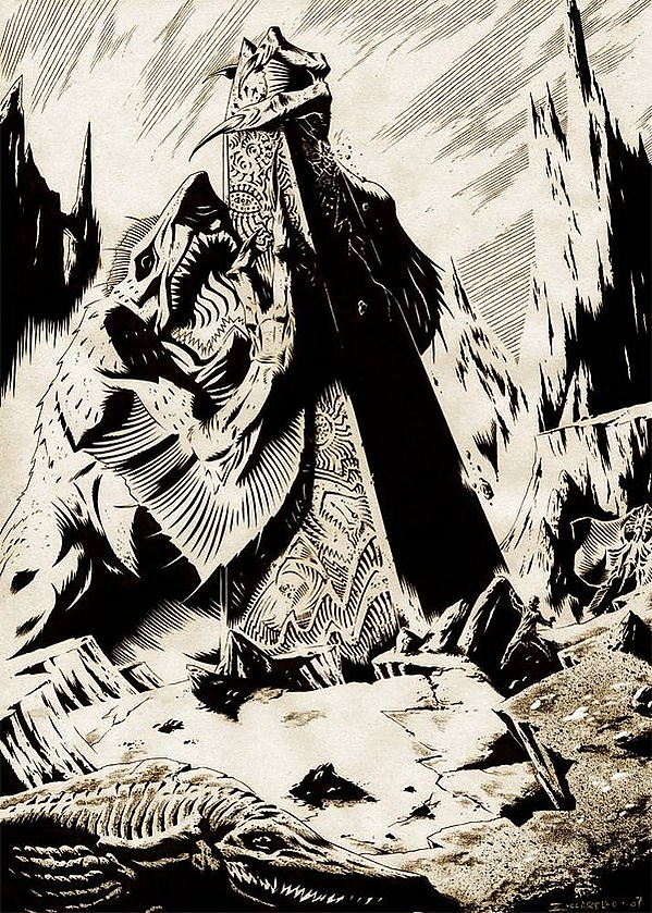 В повести «Хребты Безумия» (1931) описаны Старцы, Потомки Ктулху и Шогготы, которые строили подводные города-лабиринты и создали людей.