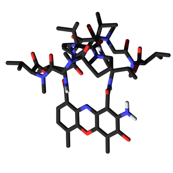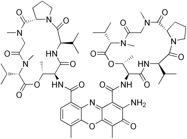 | ИЮПАК | 2-amino-N,N'- bis[(6S,9R,10S,13R,18aS)- 6,13-diisopropyl- 2,5,9-trimethyl- 1,4,7,11,14-pentaoxohexadecahydro- 1H-pyrrolo[2,1-i] [1,4,7,10,13] oxatetraazacyclohexadecin- 10-yl]- 4,6-dimethyl- 3-oxo- 3H-phenoxazine- 1,9-dicarboxamide |