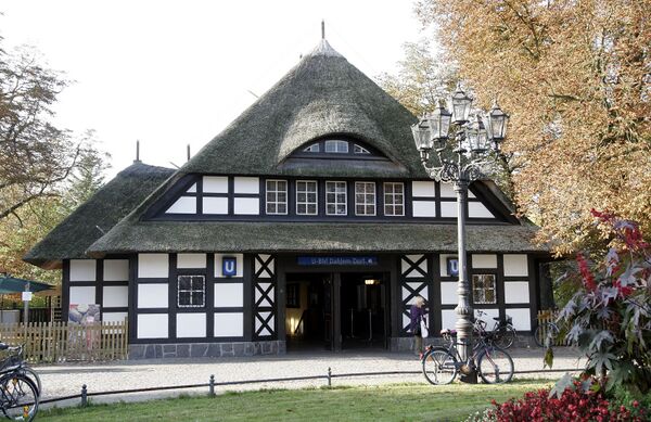 Станция построена по проекту архитекторов Фридриха и Вильгельма Хэннинг и представляет собой наземную платформу, над которой расположен автомобильный мост. В северо-восточном конце платформы расположен вестибюль, который напоминает дом зажиточного крестьянина севера Германии. Изнутри вестибюль выполнен в стиле охотничьего дома. В 1984 году на платформу станции были помещены две скамьи, напоминающие о близлежащем этнографическом музее.