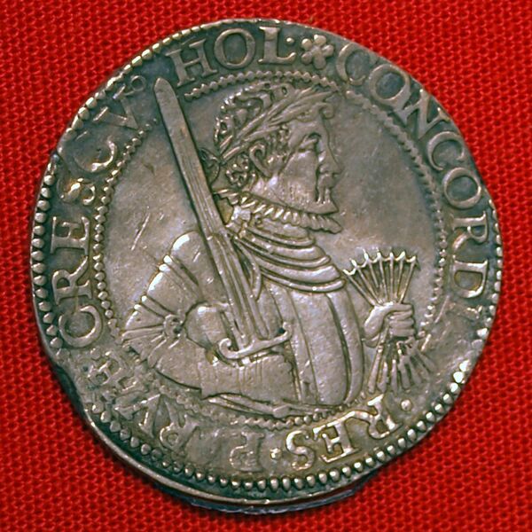 В 1606 году содержание серебра в нидерландских рейксдальдерах было незначительно снижено[14]. Новые монеты, которые выпускали вплоть до 1699 года, несли изображение не Вильгельма I Оранского, а обезличенного рыцаря. В его правой руке по-прежнему был меч, но в левой — гербовый щит провинции, а на другой стороне — коронованный гербовый щит Соединённых провинций[8].