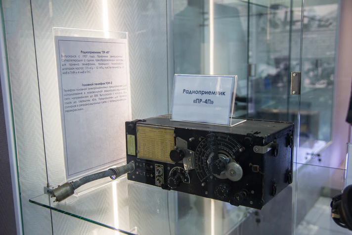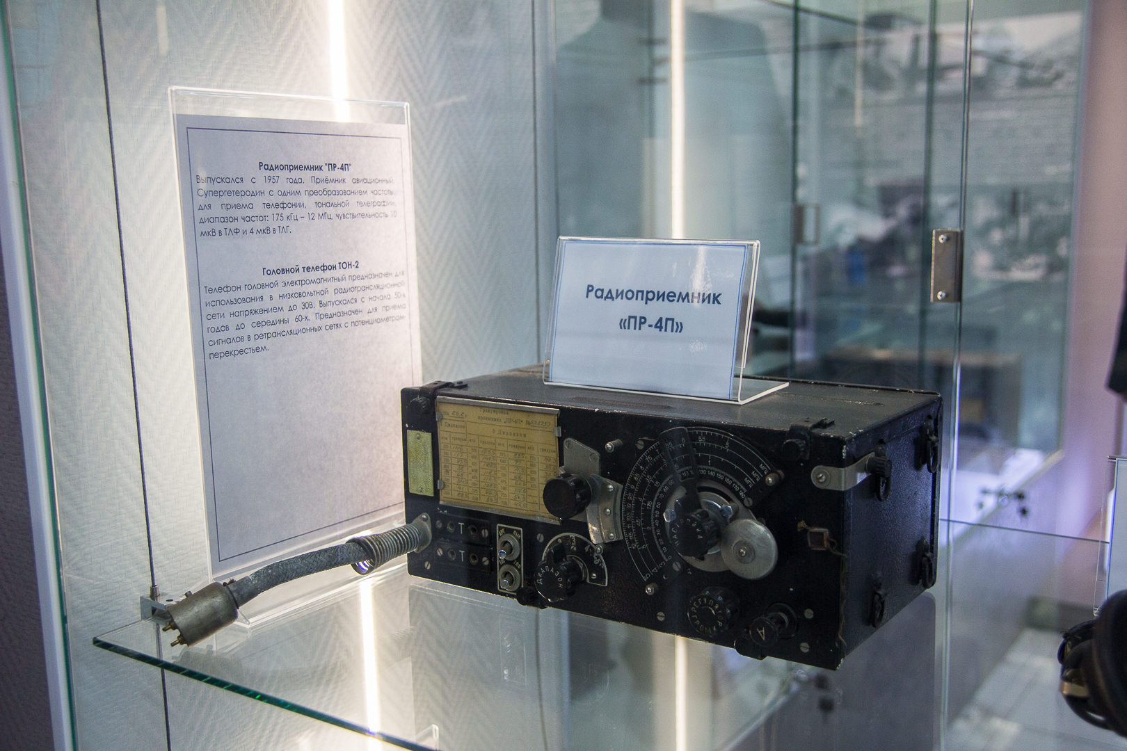 В зале представлены исторические документы, фотографии. Среди экспонатов есть редкие радиоприемники 50-60х годов.