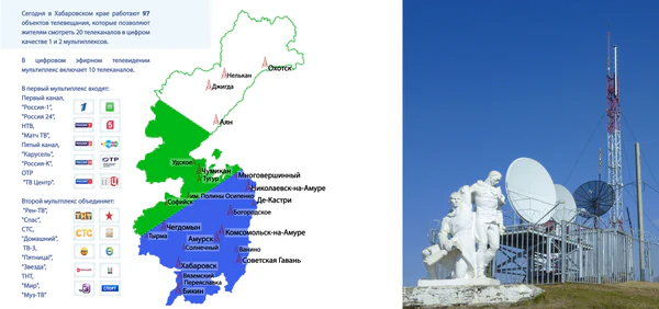 Инфраструктура эфирного телерадиовещания дальневосточного филиала РТРС включает:
