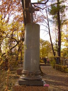 Несмотря на лютеранское вероисповедание[9], был похоронен на Выборгском католическом кладбище в Санкт-Петербурге. В 1936 году в связи с закрытием кладбища прах без надгробия[10] был перенесен на Тихвинское кладбище (Санкт-Петербург) (Некрополь мастеров искусств) Александро-Невской лавры[11], где был установлен новый памятник[12].