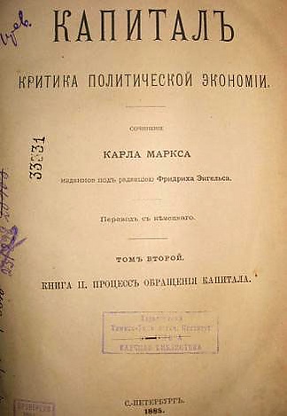 - Карл Маркс. Капитал. Критика политической экономии. Том второй. Процесс обращения капитала. Издание под редакцией Фридриха Энгельса. — СПб., 1885 г. Тир. 3030 экз.