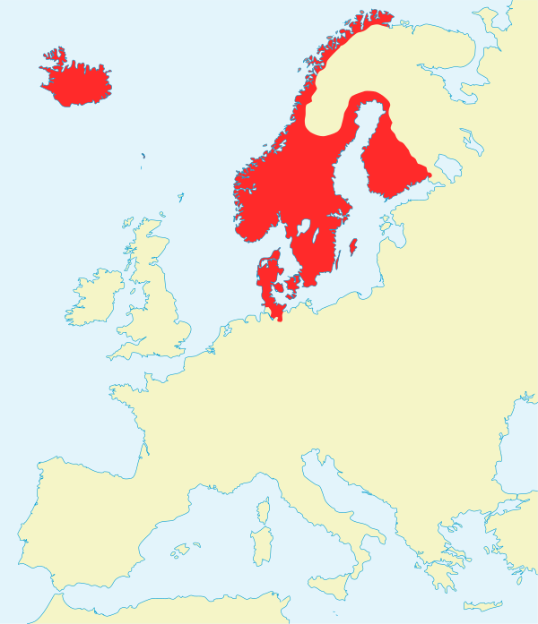 Дания — самая южная из скандинавских стран; расположена к юго-западу от Швеции и к югу от Норвегии, с юга граничит с Германией по суше. Дания омывается Балтийским и Северным морями. Территория страны включает в себя большой полуостров Ютландия и 409 островов Датского архипелага, среди которых наиболее известны такие, как Зеландия, Фюн, Веннсюссель-Ти, Лолланн, Фальстер и Борнхольм.