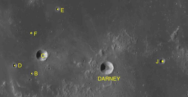 - Снимки кратера Дарне и его сателлитных кратеров с борта Аполлона-16