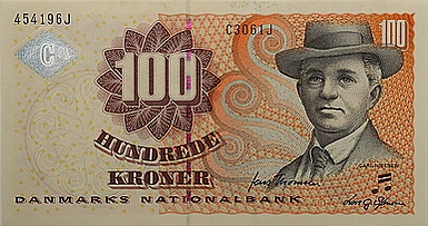 | Лицевая сторона: композитор и дирижёр Карл Нильсен Оборотная сторона: василиск из церкви Tømmerby в Тистеде, Северная Ютландия |