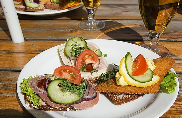 Многослойные сэндвичи — смёрребрёд — с разнообразными комбинированными начинками — гордость страны и изюминка местной кухни. Таких бутербродов существуют сотни разновидностей, в каждом кафе или доме их готовят по-своему, сочетая огурцы, сельдь, сыр, яйца, лук, масло, бекон, помидоры, паштеты, соусы и. т. д. В высоту такой бутерброд может быть несколько десятков сантиметров, едят его постепенно, снимая слой за слоем.