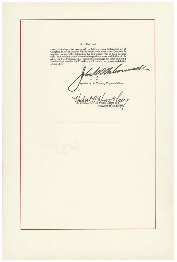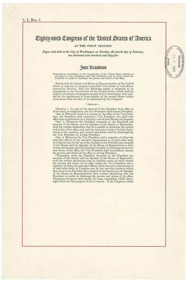 - http://www.hist.msu.ru/ER/Etext/cnstUS.htm — Архивная копия от 21 октября 2017 на Wayback Machine «Поправка XXV» (текст поправки на русском)