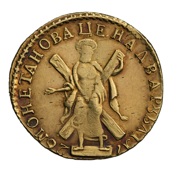 При Екатерине I была проведена денежная реформа, которая заключалась в производстве медных монет, равноценные серебряному рублю. Однако они были в дальнейшем изъяты из оборота. Из золота были отчеканены только два рубля в красном монетном дворе[1].
