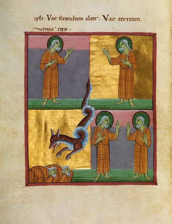 В восточной части Римской империи, а затем в Византии, отношение к Откровению было достаточно осторожным. Возможно, его каноничность отрицала раннехристианская секта алогов. По словам известного ересиографа Епифания Кипрского, они считали символизм книги «грубым» и «не поучительным»[16]. Отец церковной истории Евсевий Кесарийский в начале IV века сомневался в его подлинности, а епископ Кирилл Иерусалимский не включил в свой перечень канонических книг Библии. Отсутствует оно и списках и Григория Назианзина, Апостольских правилах и сирийской Пешитте. В результате, значительных толкований Откровения на Востоке было создано не так много. Начиная с Оригена там преобладало символическое понимание текста[17]. Грекоязычные экзегеты (Икумений Триккский, Андрей Кесарийский, Арефа Кесарийский) избегают упоминания о тысячелетнем царстве Бога на земле, в центре их внимания христологические и нравственные вопросы[18].