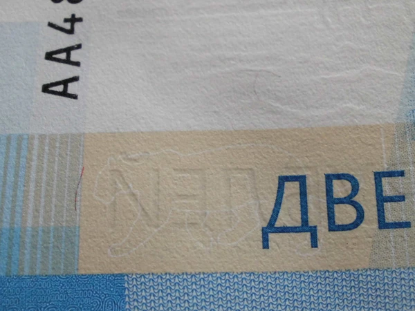 Банкнота напечатана на бумаге изготовленной из хлопка с полимерной пропиткой в которую внедрены полимерные цветные волокна серого цвета, и с участками красного и синего цветов флюоресцирующие оранжевым цветом в ультрафиолетовом свете, а также металлизированная лента с голографическими надписями видная с лицевой стороны банкноты в оконцах фигурной формы и на просвет[15][16][17]. Серия (две буквы русского алфавита и номер (9 цифр) банкноты отображены на обратной стороне 2 раза.