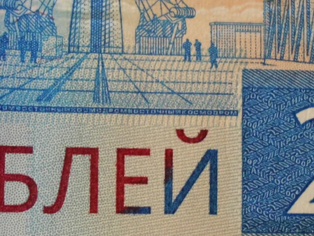- в ультрафиолетовом диапазоне[22]: флуоресцирующий оранжевый символ рубля (₽) в круге на лицевой стороне.