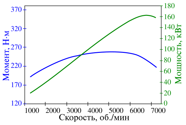 Внешней эту характеристику называют потому, что линии мощности и крутящего момента проходят выше частичных скоростных характеристик, и нельзя получить мощность выше этой кривой никакими манипуляциями с органами подачи топлива (абсолютная скоростная — смотри ниже).