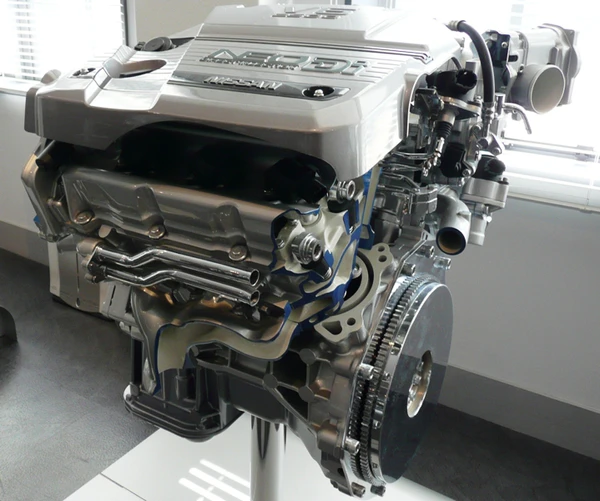 Улучшения включают в себя систему с непрерывно-изменяемыми фазами газораспределения, переменную систему впуска, использование полых и лёгких распредвалов и защищённых от трения поршней (поршни с молибденовым покрытием). Используется система Nissan прямого впрыска с платиновыми наконечниками свечей зажигания. Мощность двигателя 261—266 л. с. (195—198 кВт) при 5600 об/мин, крутящий момент 381—390 Нм при 4000 об/мин.