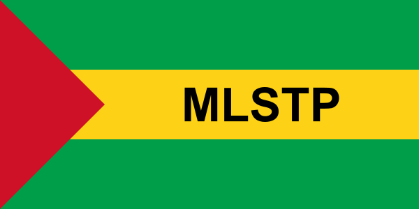 Первым символом МЛСТП был флаг, созданный его лидером Мануэлом Пинту да Коштой. Он представлял собой полотнище из трёх горизонтальных равновеликих полос — зелёной, жёлтой и зелёной, с красным треугольником у древка и чёрной аббревиатурой MLSTP на жёлтой полосе. Вскоре вместо аббревиатуры на жёлтой звезде стали изображаться две большие чёрные звезды, символизирующие принадлежность страны к Африке, единство двух островов и их расположение на экваторе среди водных просторов Гвинейского залива.