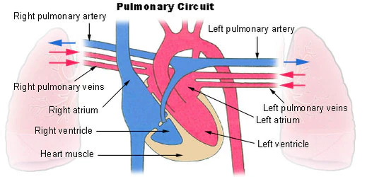 Правый желудочек и левое предсердие образуют малый круг кровообращения, тогда как левый желудочек и правое предсердие образуют большой круг.